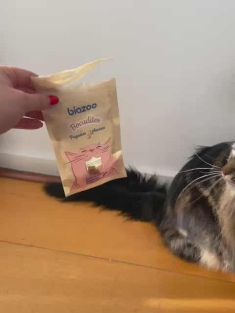 Un snack para un momento de conexión con tu gato. Estos bocaditos ricos en proteína están pensados para que disfrute de un sabor irresistible mientras cuidas su salud día a día.